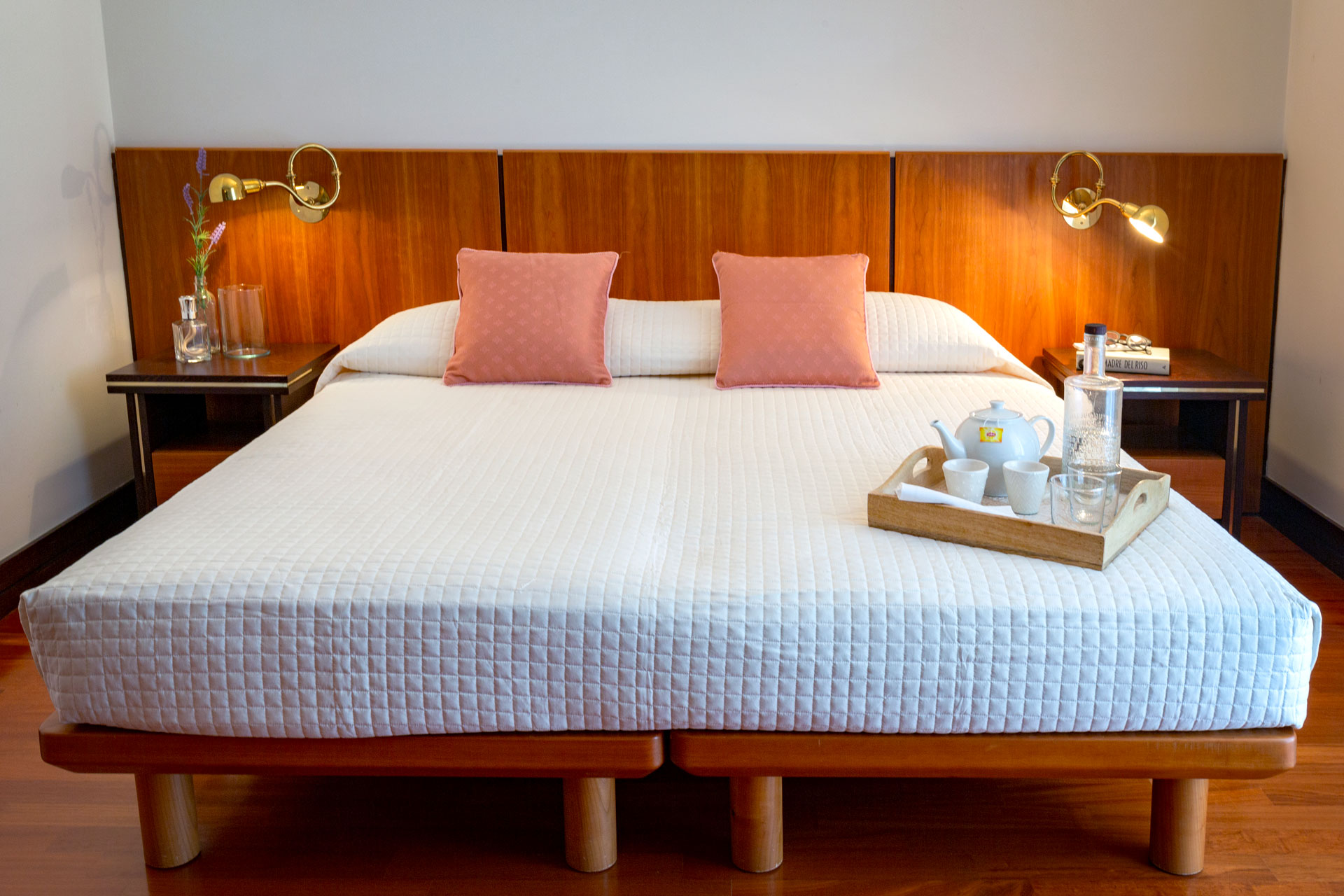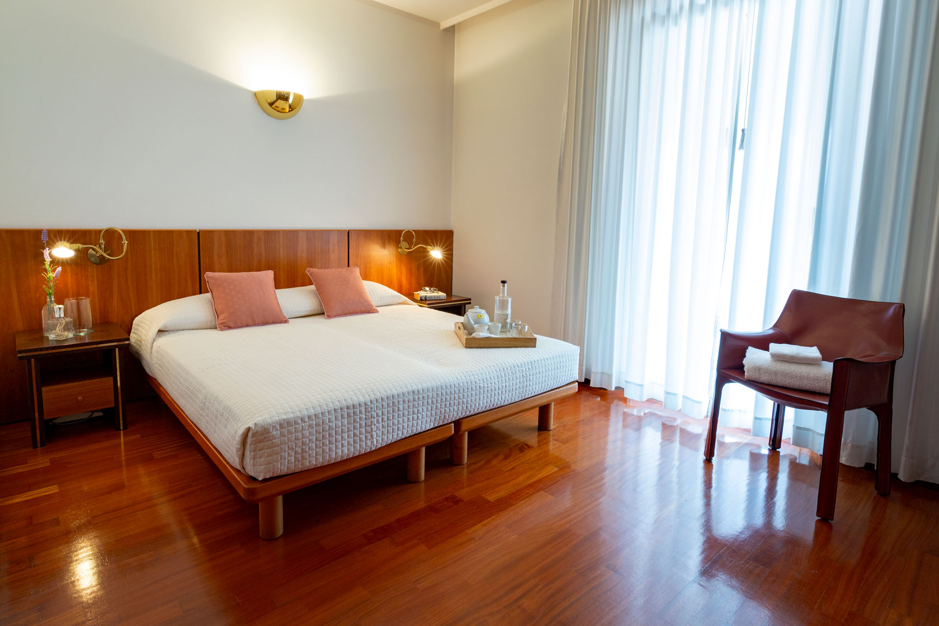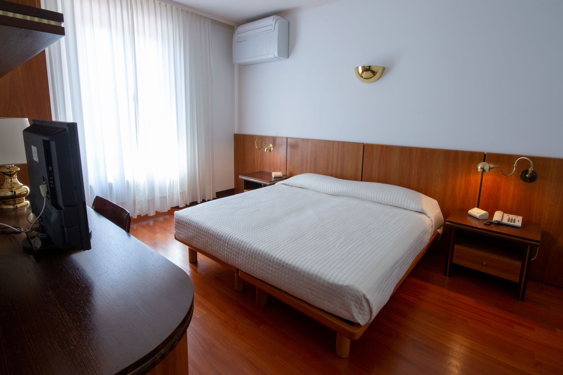 Camera doppia con letto matrimoniale, più spaziosa e luminosa, dotata di minibar, scrivania, Wi-Fi e TV. Ideale per chi cerca un soggiorno rilassante con un tocco extra di comodità.